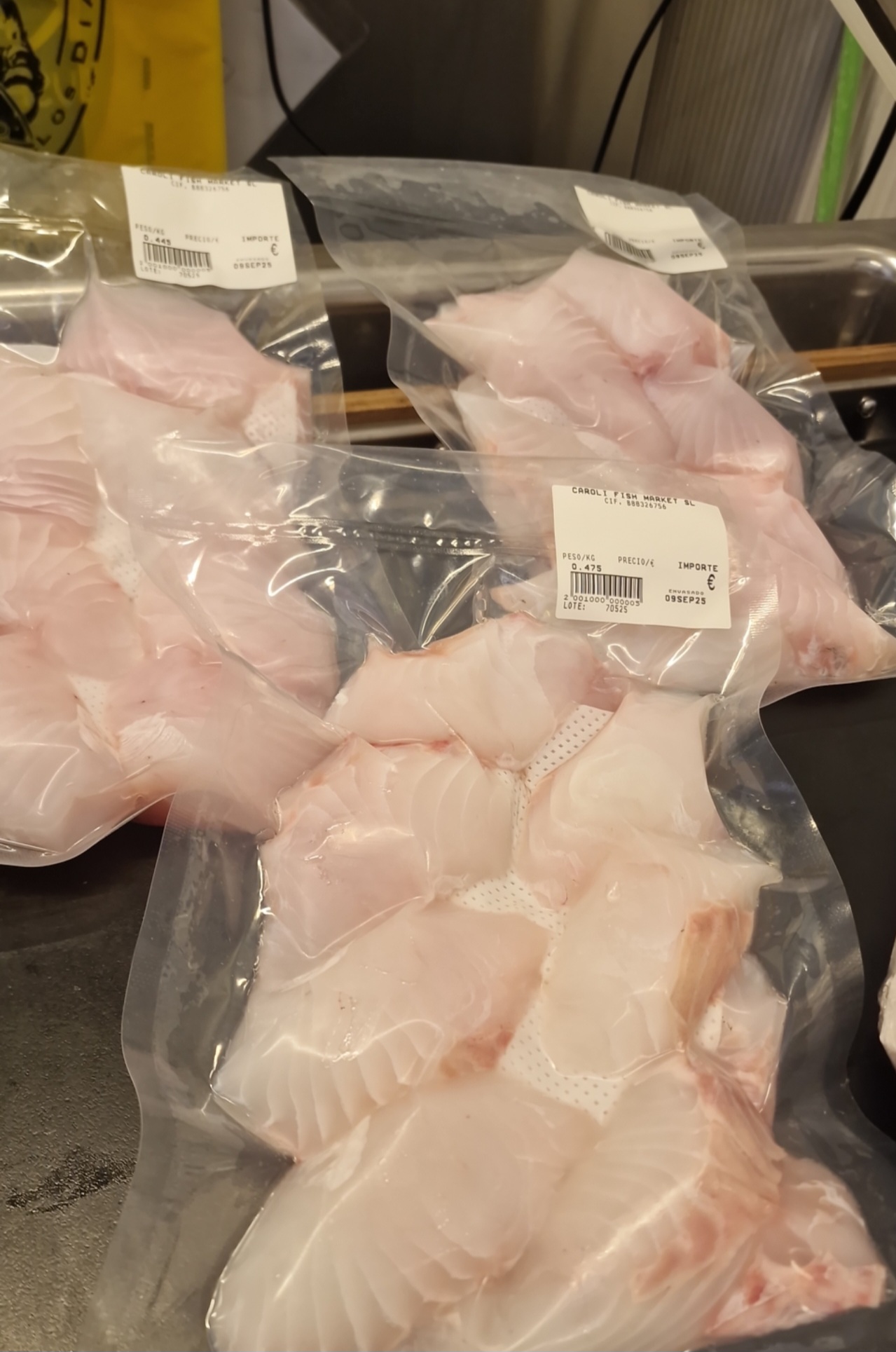 Pieza de Merluza de 3k a 3,5kPreparada en Bocaditos Sin Piel ,Sin Espinas Envasada al Vacio en varios Paquetes Envio de Merma